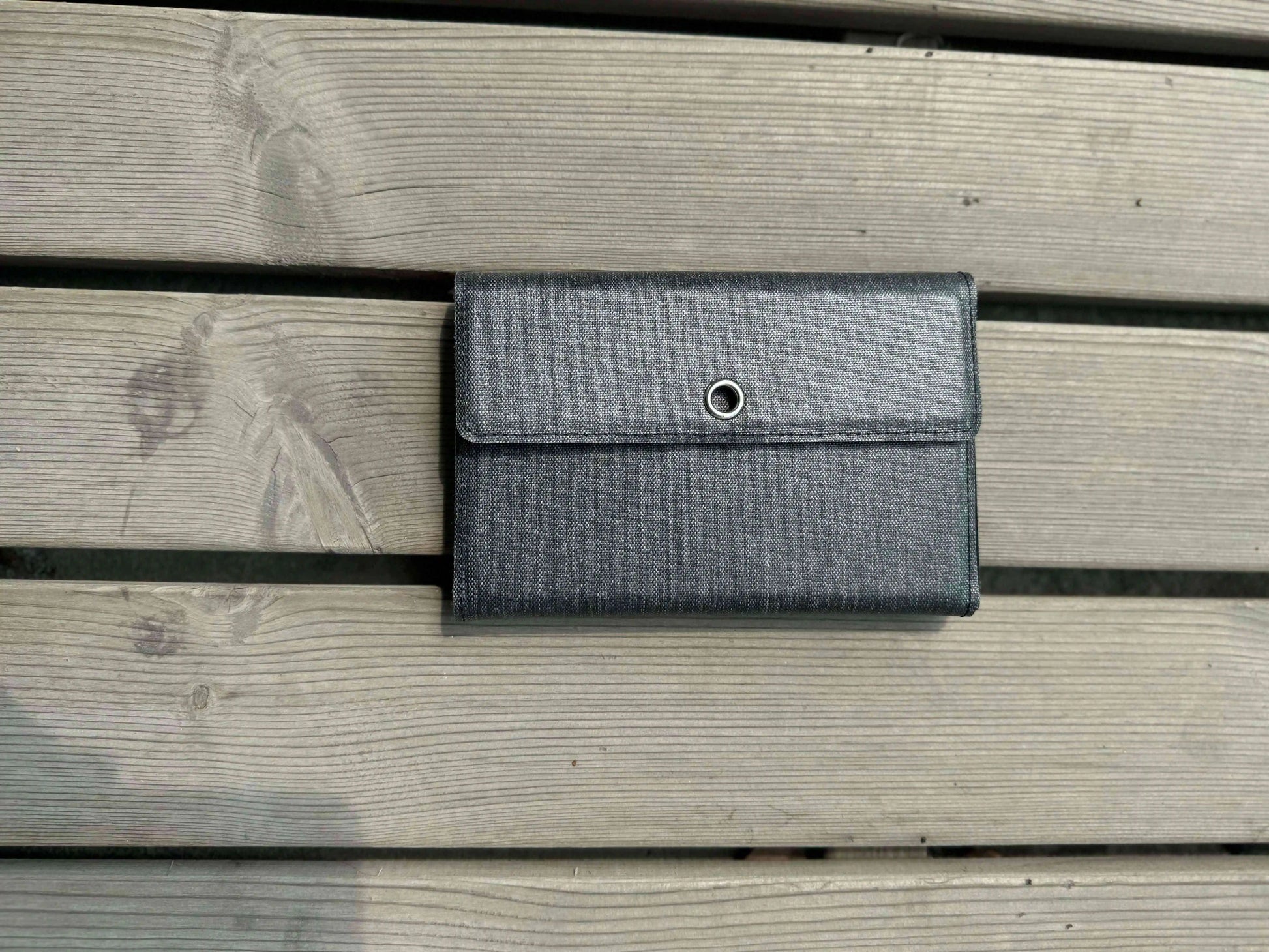 Using the solar panel, it takes about 8 hours in direct sunlight, or you can use a USB adapter for faster wired charging.